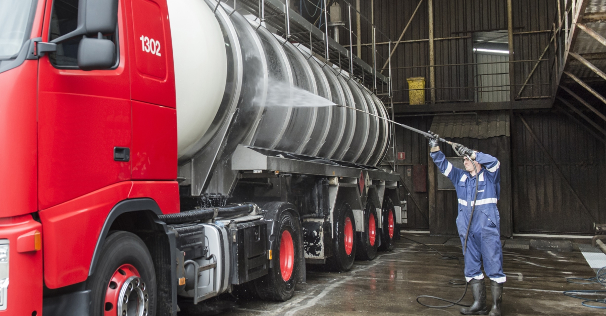 Tankwagens, tankcontainers en bulkwagens worden gereinigd in de tankwasstraat.